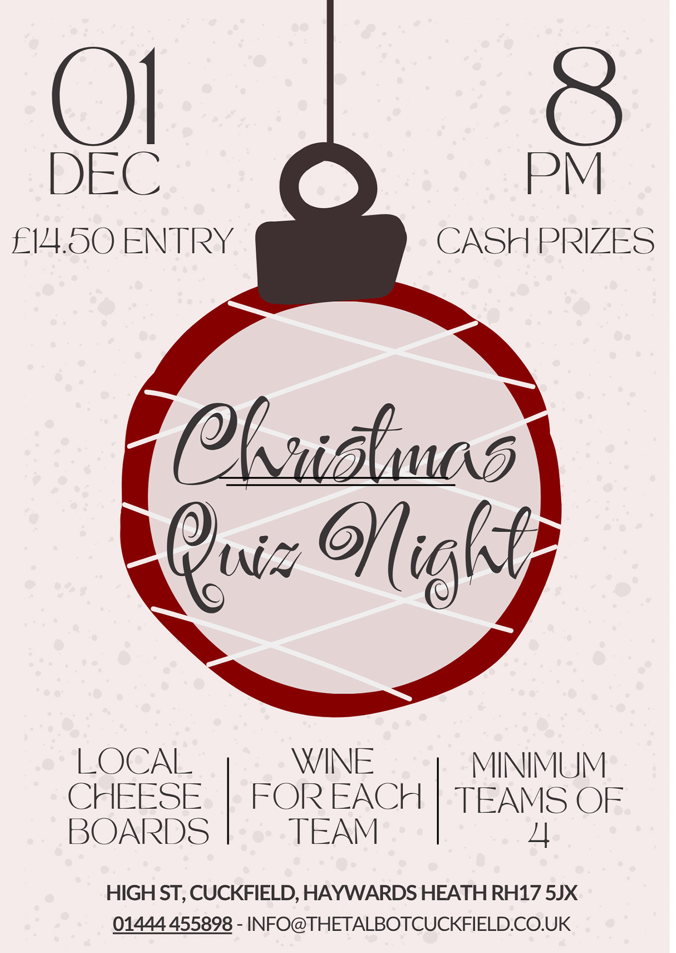 Join us for a festive evening of fun, laughter, and friendly competition at our Christmas Quiz Night.